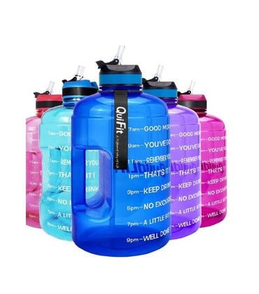 QuiFit Motivational Gallon Straw Water Bottle (Blue)