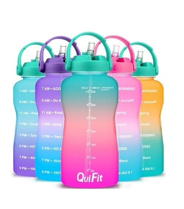QuiFit Motivational Gallon Water Bottle - with Straw & Time Marker BPA Free 128 (Green/Pink Gradient)