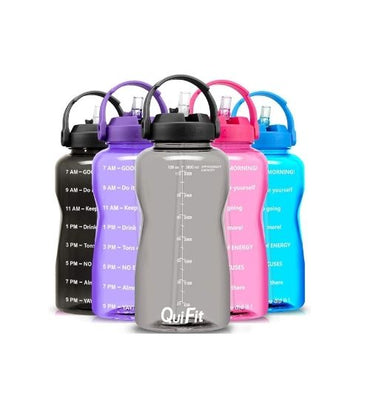 QuiFit Motivational Gallon Water Bottle - with Straw & Time Marker BPA Free 128 (Grey)