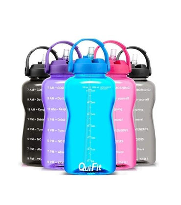 QuiFit Motivational Gallon Water Bottle - with Straw & Time Marker BPA Free 128 (Light blue)