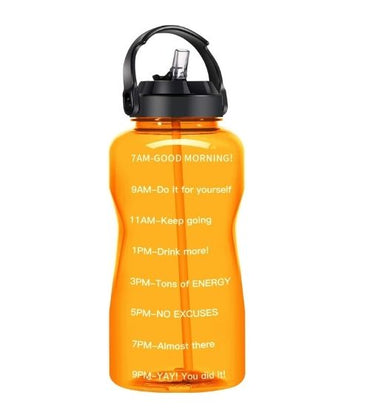 QuiFit Motivational Gallon Water Bottle with Straw & Time Marker BPA Free- 128 oz (Orange)