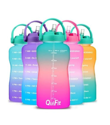 Quifit Motivational Water Bottle 64 Oz with Straw & Time Marker BPA(Green/Pink Gradient)